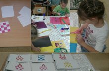 Дети старшей группы на занятии конструирование прошли тему "Плетеные поделки".Задачей этого занятия была познакомить детей с техникой плетения для создания на основе этого способа разных поделок. Развивать мелкую моторику и чувства цвета при выборе бумаги. Во время занятия дети узнали много новой информации о тканях, о различных видах переплетений и во время практической части сами выполнили полотняное переплетение из цветной бумаги. Из переплетенной основы изготовили сумки.