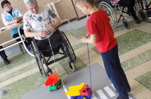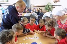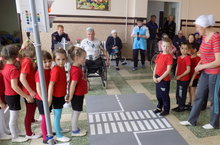 Балалар җәяүлеләр чыгу урынын күрсәтүче юл билгеләрен белүләрен, светофорны аңлауларын күрсәтеп, юл аркылы чыгып күрсәттеләр. Ә бу вакытта өлкәннәр командасы машиналар ролен башкардылар.