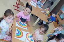 Бүген зурлар төркемендә күңелле чара узды. Балалар төсләр турында белгәннәрен ныгыттылар,салават күпере ничек барлыкка килүен белделәр, аның төсләре, эзлекле рәвештә аларны урнаштырырга, төсләрне кушып салават күпере төсләрен чыгарырга өйрәнделәр.