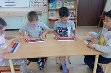 Зурлар төркеме балалары белән Россия көне турында әңгәмә оештырылды. Балалар төсле тасмалардан Россия флагы ясадылар