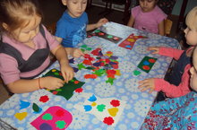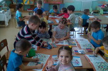 Зурлар һәм мәктәпкә әзерлек төркеме балалары бүген милли киемнәр турында алган белемнәренә нәтиҗә ясадылар. Кул эшләрен алар татар халкының орнаментлары белән бизәделәр.