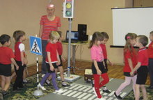 Балалар юлларда иминлек саклаучы - светофор белән, аның төзелеше, әһәмияте белән таныштылар. Җәяүлеләр ролендә, шофер ролендә булып карадылар. Юл аркылы чыгу күнекмәләрен ныгыттылар.