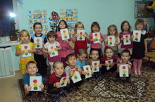 Светофор турында алган белемнәрне ныгытып, зурлар төркеме балалары ертып ябыштыру ысулы белән аппликация ясадылар.