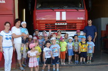 Балалар бүген янгын сүндерү оешмасына сәяхәт иттеләр.Алар шушы хезмәт вәкилләре белән таныштылар.Эшче абыйлар балаларга ут белән уйнамаска кирәк икәнлеген төшендерделәр.МЧС хезмәткәрләренә авыр эшләрендә сәламәтлек теләдек.