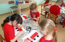 Рус телле балалар дидактик уеннар аша татар милли орнаментлары бн танышалар. "Калфакны, түбәтәйне бизә", "Бизәкләр" доминосы h.б. уеннарны яратып уйныйлар.