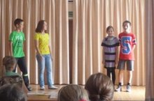 Сегодня у нас в лагере прошёл конкурс Мистер и Мисс лагеря. Две пары остались Мистером и Мисс лагеря. Остальные ученики играли в группах поддержки, участвовали с концертными номерами