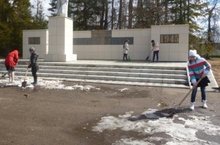 Наши ученики ведут шефскую помощь за памятником неизвестного солдата. Сегодня ученики вышли на уборку территория памятника.