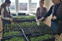 Учащиеся ухаживают за рассадами. Идет подготовка по озеленению территории школы.