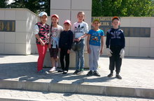 Сегодня мы провели трудовой десант на территории памятника , играли игры на свежем воздухе