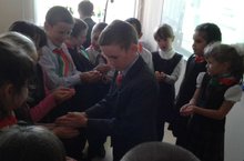 В школе еженедельно проводится проверка внешнего вида учащихся. Все учащиеся носят школьную форму. Мальчики носят белые и синие рубашки, девочки носят белые и алые блузки.Молодцы!