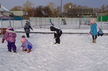 Первый снег. Дети с удовольствием лепили снеговиков, фигурки.