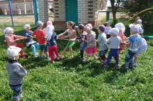 Татар халкының милли бәйрәме Сабан туе бәйрәме уздырдык. Көч сынаштык, ярыштык. Балаларга аркан тарту уены бик ошады.