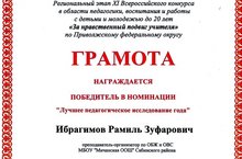 Физкультура һәм ОБЖ укытучысы Ибрагимов Рамил Зөфәрович республикакүләм "За нравственный подвиг учителя" конкурсында региональ этабында җиңүче булып Казанда чыгыш ясап кайтты.