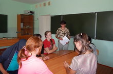“Факел” лагеры укучылар бакчада эшләделәр, экскурсиягә бардылар, “Гаилә бәхете нидә?” диспутында катнаштылар. Бүгенге көн укучыларга бик ошады.