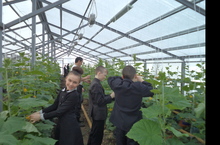 Мәктәп теплицасында гөрләп эш бара. Укучылар да укытучылар да кыяр уңышы өчен көрәшәләр.