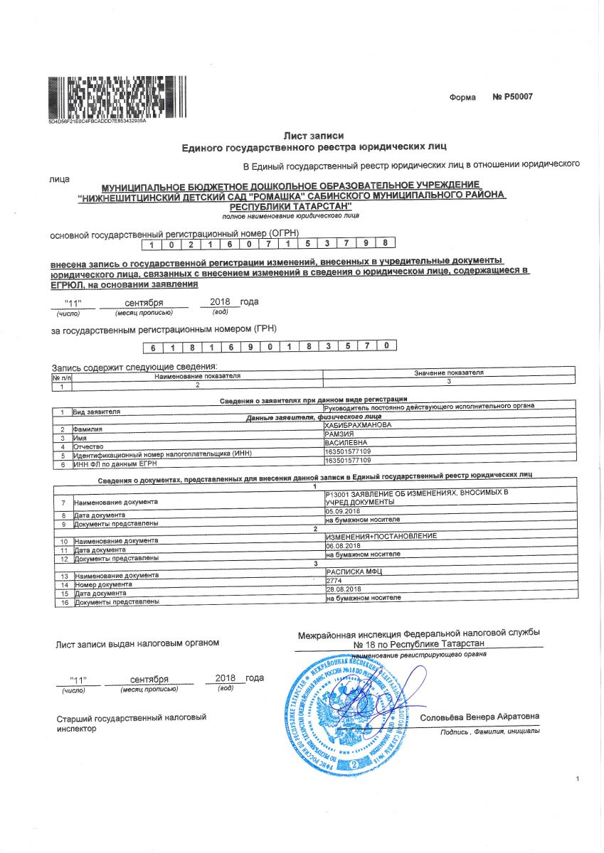 Изменения в свидетельстве о внесении записи в Единый государственный реестр юридических лиц