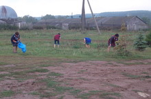 Август аеның соңгы көнендә барыбыз да мәктәп территориясен чүпләрдән чистарту өмәсенә чыктык.