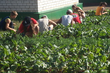 7 сыйныф укучылары мәктәп бакчасында тырышып эшлиләр.
