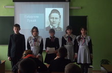 Зәңгәр күк йөзендә кояш балкыган чакта, шаулап – гөрләп килгән апрель аенда, безнең яраткан шагыйребез Г.Тукай туган. Шушы уңайдан, мәктәбебезнең татар теле һәм әдәбияты укытучылары Мусина Җ.Х. белән Мусина Ә.М. шагыйрьнең тормыш һәм иҗат юлына багышланган кызыклы, тирән эчтәлекле сыйныфтан тыш чара үткәрделәр. Укучылар викторина сорауларына җавап бирделәр, Г.Тукайның төрле елларда язылган шигырьләрен сәнгатьле итеп сөйләделәр. Чара татар халкының гимнына әверелгән "Туган тел" җырын башкару белән тәмамланды. -