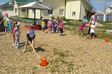 Бакчабызда татар халкының милли бәйрәме - Сабантуй үткәрдек. Балалар бик шатланып төрле уен- ярышларда көч сынаштылар.Йомырка кабып йөгерү, таяк тартышу, чүлмәк вату кебек уеннарны бигрәк тә яратып уйнадылар һәм бүләкләр белән бүләкләнделәр.