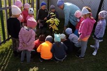 "Агач утырту көне"акциясе уңаеннан бакчабызда балалар белән бергәләп миләш агачы утырттык.