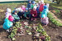 Җәй буе балалар белән бакчабызда тәрбияләп үстергән яшелчәләрне җыеп алдык. Балалар бик шатланып, зур теләк белән җыйдылар.