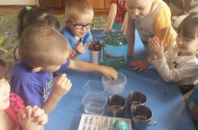 "Су-яшәү чыганагы" темасы буенча, су белән тәҗрибәләр үткәрдек. Суның 3 төрле халәттә карадык. Балалар бик кызыксынып катнаштылар.