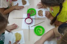 Түгәрәк эшчәнлегебезне дәвам итеп ярмалар ярдәмендә гөмбәләр ясадык.