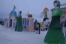 Композиция фигур из снега, созданная руками студентов Сабинского аграрного колледжа получила Гран-при среди организаций Сабинского района.