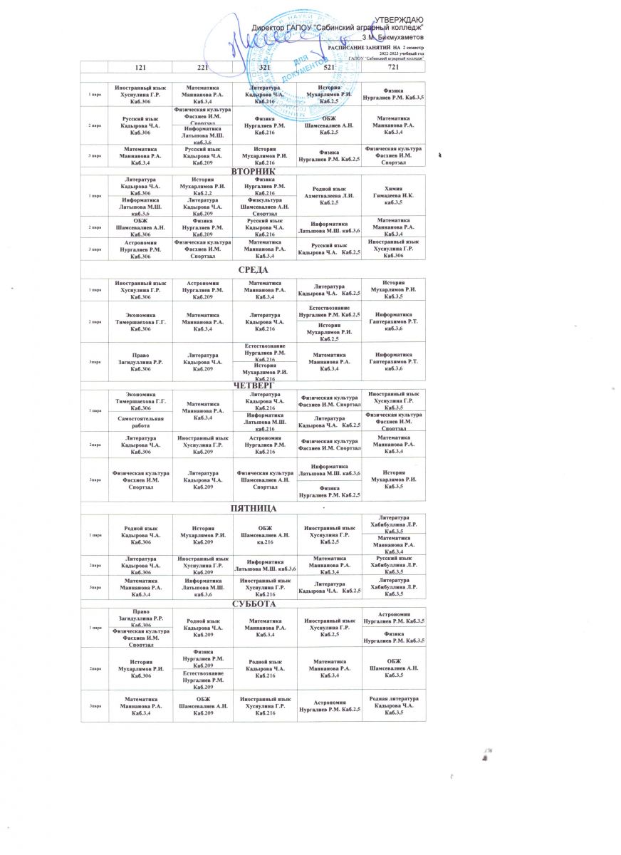 Расписание занятий на 2022-2023 учебный год 2 семестр/ Дәресләр расписаниесе 2022-2023 уку елына 2 семестр