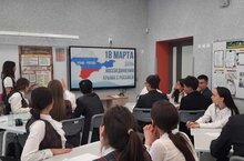 В связи с исторической датой присоединения Крыма к России 18 марта 2023 г. Юсупова Р.З. учитель истории и обществознания, для учеников 10 класса провела единый открытый урок «Крым и Россия – общая судьба». Она рассказала о событиях, предшествовавших присоединению Крыма к России. Учитель в доступной для понимания детей форме познакомила их с краткой историей Крыма. Рассказала о событиях 2014г.