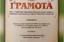 Зурлар төркемендә тәрбияләнүчеләр Байназарова Айсылу һәм Нургалиева Айзилә "Сакла"порталы материаллары буенча иң яхшы Яңа ел уенчыгы, юл хәрәкәте куркынычсызлыгы буенча ясалган эшләнмәләр конкурсында катнаштылар.