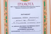 Зурлар төркеме балалары чит телләр буенча үткәрелгән район фестивалендә грамота белән бүләкләнделәр.