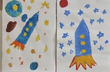 12 апрель-Космонавтика көне. Космонавт Юрий Алексеевич Гагарин дөньяда беренче тапкыр «Восток»кораблендә Җир тирәли очып узды. Бу илебез өчен генә түгел, бөтен дөнья өчен дә бик мөһим һәм шатлыклы вакыйга булды. Һәм без зурлар төркеме балалары белән бергә космос көненә багышланган рәсем ясадык.