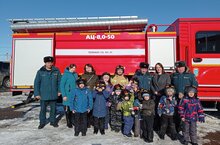 "Бала һөнәр" проекты буенча "Янгын сүндерү бүлеге"ндә кунакта. В прокте "Bala honere" дети познакомились с профессией пожарного, и сами принили участие в тушении пожара.