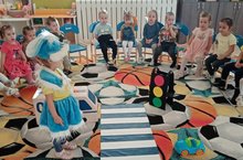 Сегодня в гости в младшую группу приходил зайчик. Мы поделились с ним своими знаниями правил безопасного поведения на дорогах.