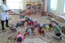 Тәрбияче- табибә динамик пауза вакытында, балалар белән релаксация үткәрде .