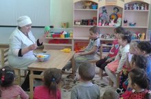 Бакчабызда спорт һәм сәламәтлек турында сөйләшүләр дәвам итә. Әйләнә-тирә дөнья эшчәнлегендә тәрбияче, табибә ролендә , балаларга сәламәт булу өчен иң беренче чиратта нәрсәләр эшләргә, ничек тукланырга кирәклеге турында аңлатты. Яшелчә һәм җиләк - җимешләрдәге витаминнар белән таныштырды.