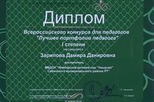 "Мэгариф" белем биру узэгенен, Ботенроссия кулэмендэ уткэрелгэн, педагоглар очен "Лучшее портфолио педагога" конкурсында катнашып, тэрбиячебез Дамира Данировна , 1 нче дэрэжэдэге диплом белэн булэклэнде.Котлыйбыз!