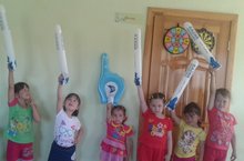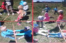 Җәй кояшы күңелләрне иркәләгәндә , саф һавада күңелле уеннар йөрәкләргә дәрт бирә. Ямьле җәйнең кояшлы бер көнендә бакчабызда кечкенә генә сабантуй бәйрәме ясап алдык. Анда аркан тартыш, сулы чиләк белән йөгерү, таяк тартыш , капчык киеп йөгерү кебек башка төрле кызыклы уеннар уйнадык. Ничек кенә бер-беребезне җиңәргә тырышсак та , дуслык җиңде.