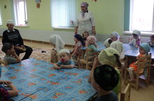 Иләбәр “Умырзая” балалар бакчасында , бүген, Корбан ашы уздырылды. Иң беренче чиратта һәр балага Корбан итеннән өлеш чыгарган “Алтын Саба М ” җәмьгыятенә рәхмәтебезне белдерәбез. Авылыбыз мулласы хаҗ сәфәрендә булу сәбәпле, балалар бакчасына авылыбызның мөхтәрәм кешесе, Әхтәмов Тимершәех абый Әхтәмҗан улын чакырдык. Тимершәех абый 5 вакыт намазын калдырмый, һәр җомга мәчеткә йөри.Ислам дине аңа әтисеннән күчкән гыйлемлелек. Тормыш иптәше Әльфинур апа белән 2 кыз, 2 малай тәрбияләп үстергәннәр. Тимершәех абыйны балалар салават әйтеп каршы алдылар. Ә ул балаларга догалар укыды, изге теләкләрен җиткерде, күчтәнәч конфетларын өләште. Китәр алдыннан , әле ел ярым гына эшчәнлек алып барган Иләбәр “Умырзая ” балалар бакчасына уңышлар теләп, кыйблага карап Азан әйтте.