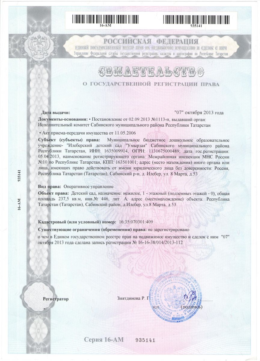 Муниципальное Бюджетное Дошкольное Образовательное Учреждение «Илеберский детский сад «Умырзая» Сабинского муниципального района Республики Татарстан»/Татарстан Республикасы Саба муниципаль районы Иләбәр “Умырзая” мәктәпкәчә белем бирү муниципаль бюджет учреждениесе