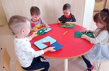 Дети из 1 младшей группы во время игры с дидактическим пособием развивали мелкую моторику рук, сенсорное восприятие, творческое и логическое мышление. Во время игры дети учатся расстёгивать молнию, завязывать шнурки и закреплять заклёпки.