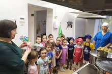 Бүген бакчабызда тәрбияләнүче зурлар төркеме балалары һәм тәрбияче Камалеева А.Х.пешекчеләребезне профессиональ бәйрәмнәре белән тәбрикләделәр.Тәмле-тәмле ашлар,боткалар, коймаклар белән сыйлаганнары өчен рәхмәт әйтеп,эшләрендә зур уңышлар теләделәр.