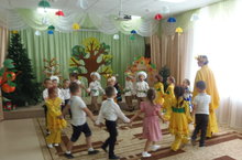 Во время игры закреплялись знания детей о цвете и величине осенних листьев. Также малыши учились передвигаться по комнате, следуя указаниям взрослого.