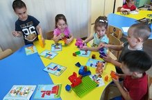 Ребята по схеме сделали постройки и с удовольствием играют с ними. Игра с "Лего-конструктором" позволяет детям объединится в пары, группы и развивает дружелюбное отношение между сверстниками.