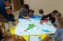 Воспитатели и родители 2 младшей группы создают детям предпраздничное настроение: вместе раскрашивают большую "Новогоднюю раскраску".