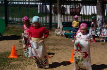 22 июнь көнне бакчабызда Сабантуй бәйрәме булды.Бәйрәмдә капчык киеп, кашыкка йомырка салып йөгерү,ат чабышы уены ,чүлмәк ватыш һәм татар халкының бик күп уеннары уйналды.Бөтен җирдә шау-шу, уен-көлке булды. Беркемдә читтә, беркем бүләксез калмады.