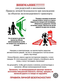Справилами личной безопасности при нахождении на объектах железнодорожного транспорта можно ознакомиться в разделе "Родителям"