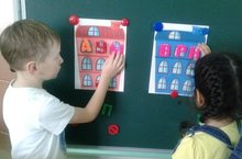 Играя с жильцами домика, дети учатся слышать звук. Они устанавливают последовательность и количество звуков в данном слове, дают им полную характеристику, называют по имени звук в указанном окошке, производят слияние звуков, определяют позицию звука в слове, производят замену одного звука на другой.